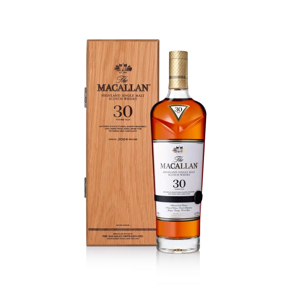 The Macallan Sherry Oak 30 Years Old forms part of our Sherry Oak range which features a series of single malt whiskies matured in hand-picked sherry seasoned oak casks from Jerez for richness and complexity. Deliciously smooth with a long, rich finish, the natural dark mahogany colour of the 30 Years Old is the richest in the range. A luxurious whisky with 30 years of sherry seasoned flavour.